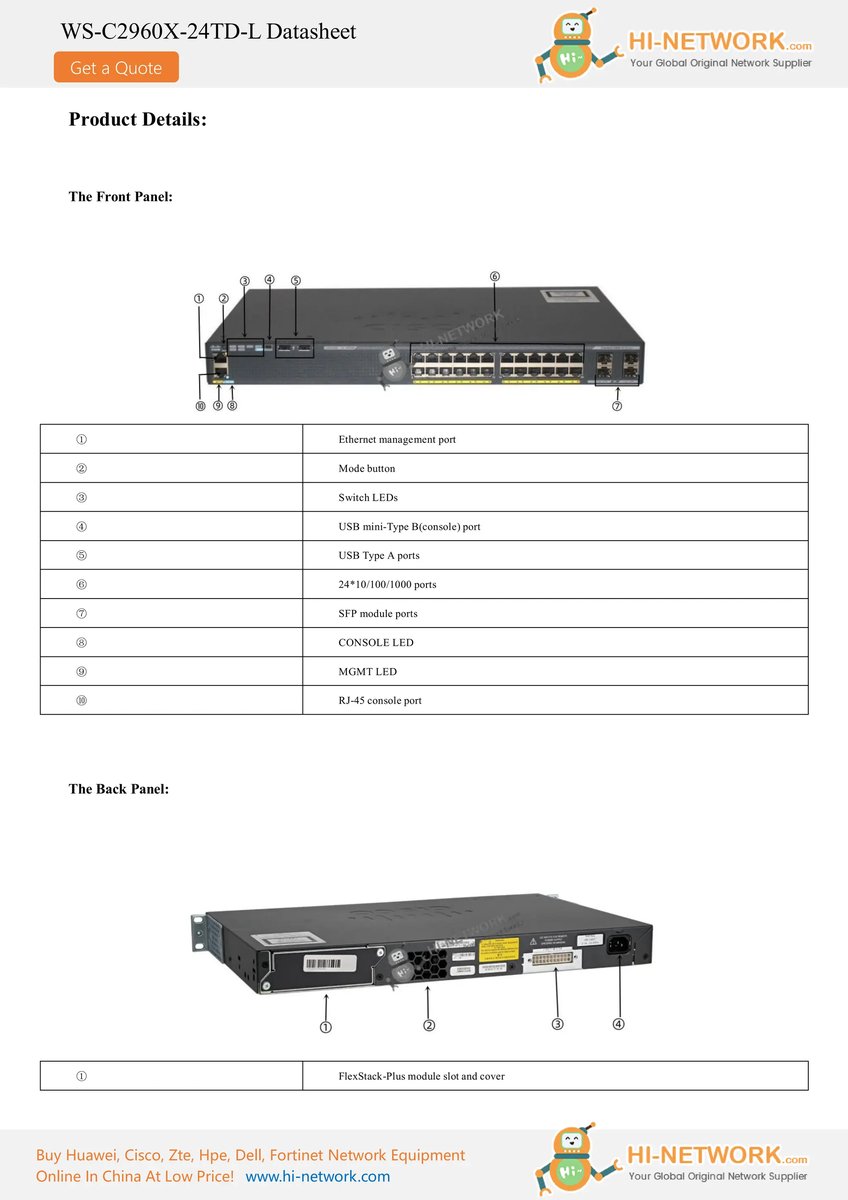 Cisco WS-C2960X-24TD-L 24x1GbE 2x10G SFP+ Switch – Gigabit Ethernet Switch